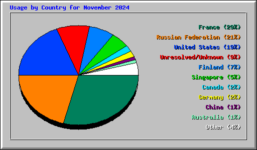 | # | Hits | Files | kB F | kB In | kB Out | Country | |||||